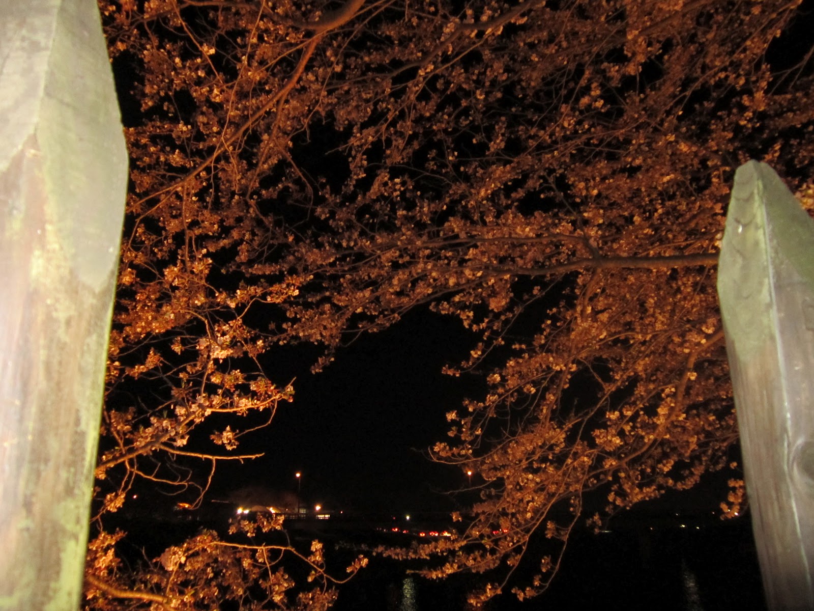 花見(はなみ)When translated it simply means "flower-watching". Once a year in Japan, the cherry blossoms bloom, and it's a big deal. No one is ever exactly sure when Hanami is going to be celebrated, but it's usually around mid-April. I am incredibly fortunate that my relatively short stay of three months fell during this glorious period. Unfortunately, I only really had the opportunity to take pictures at night, so you can'y really see the real beauty of these flowers.
